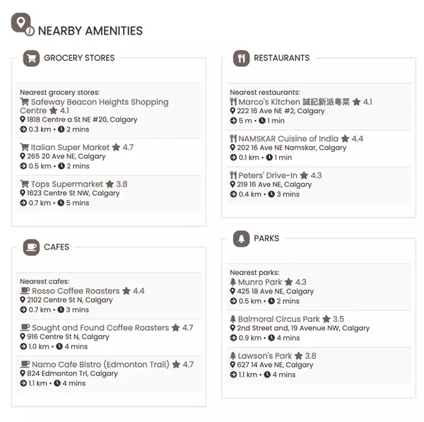 Tuxedo Park is one of those inner-city spots that keeps life simple. You’re close to downtown, major roads like Centre Street and Edmonton Trail, and quick routes to the airport. The area has local coffee shops, parks, restaurants, and easy transit access. Schools and everyday amenities are all close by, so running errands doesn’t turn into a trek.