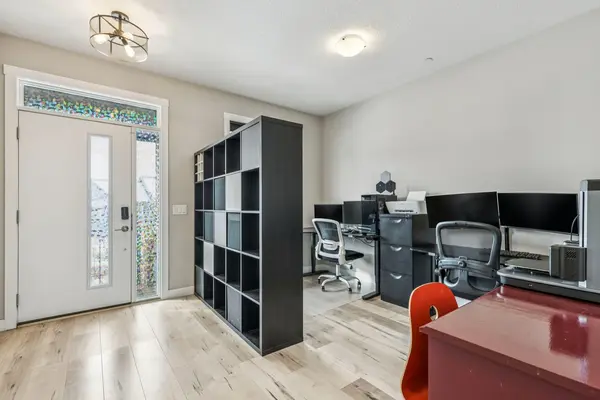 Inside, the main floor is bright and open with large windows and upgraded sliding doors that lead straight out to the deck—making it easy to enjoy indoor-outdoor living. The front room is currently set up as a home office but can easily flex into a playroom, sitting area, or formal dining space depending on your needs.